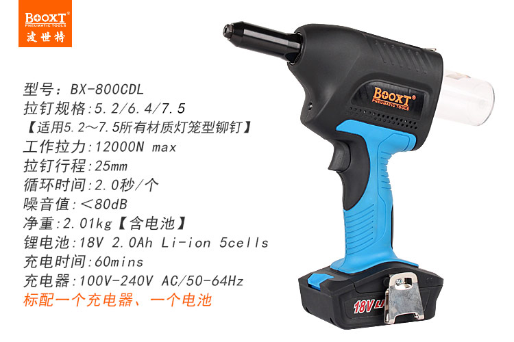 充電防水燈籠鉚釘槍BX-800CDL