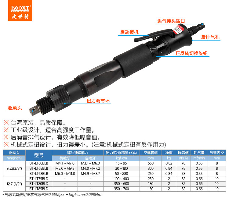 東莞強勁五金工具有限公司提供臺灣BOOXT波世特氣動工具,可調(diào)定扭矩氣動扳手BT-LT85BLD廠家直銷,首件享特價。咨詢熱線:4008301980